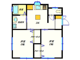 | 間取り | 2DK 南向き | 面積 | 42.56m 2 ( 12.87坪 ) |
