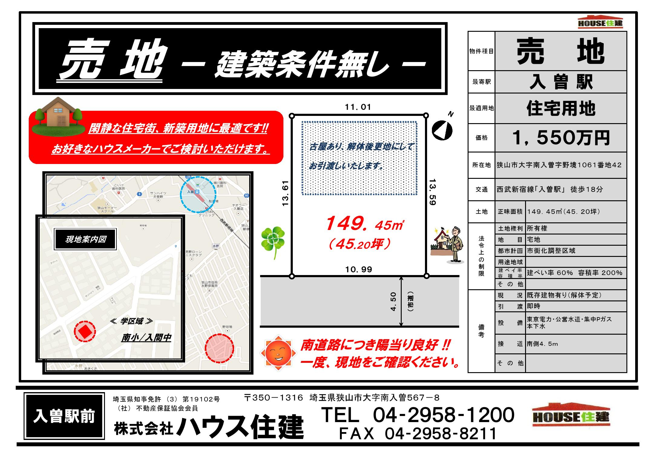 ハウス住建入曽駅すぐ近く!狭山市、入間市、所沢市周辺の不動産