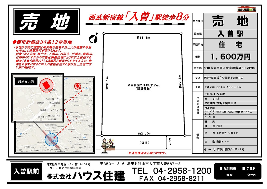 ハウス住建入曽駅すぐ近く!狭山市、入間市、所沢市周辺の不動産