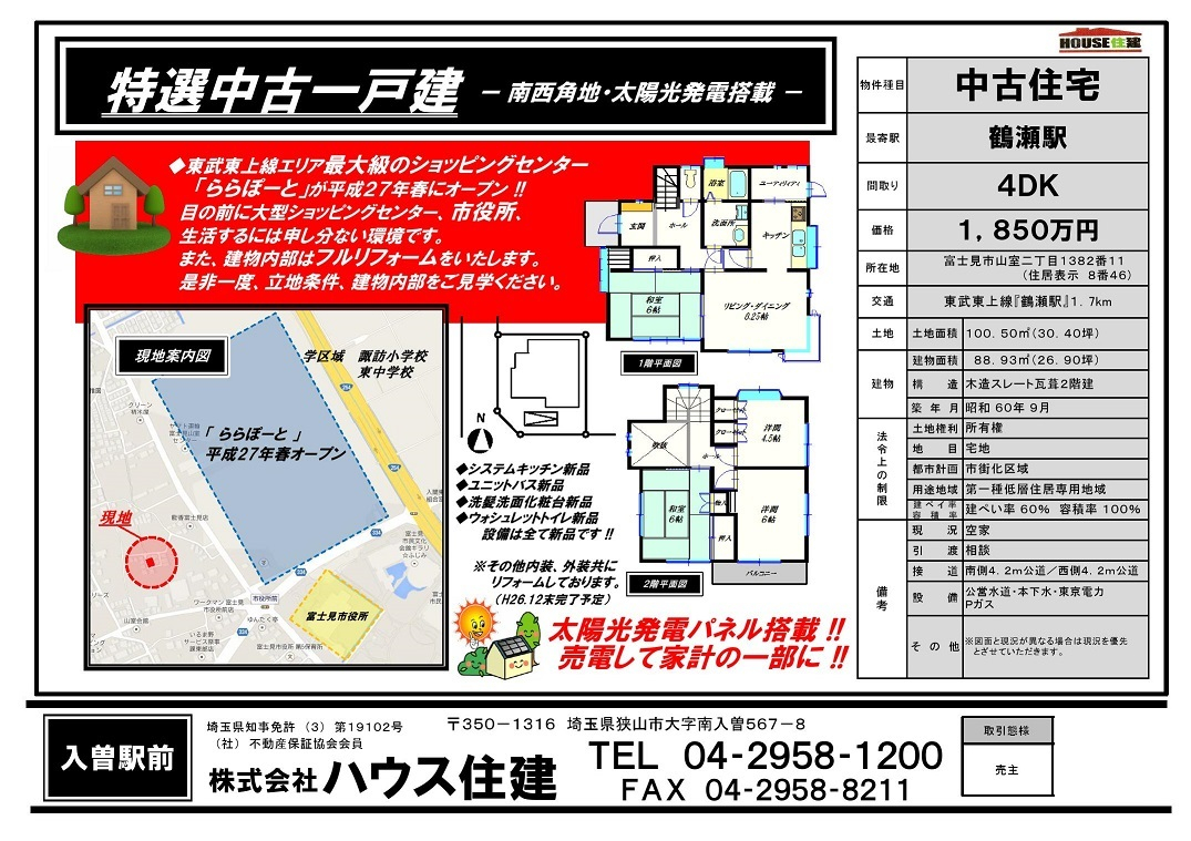 ハウス住建入曽駅すぐ近く!狭山市、入間市、所沢市周辺の不動産