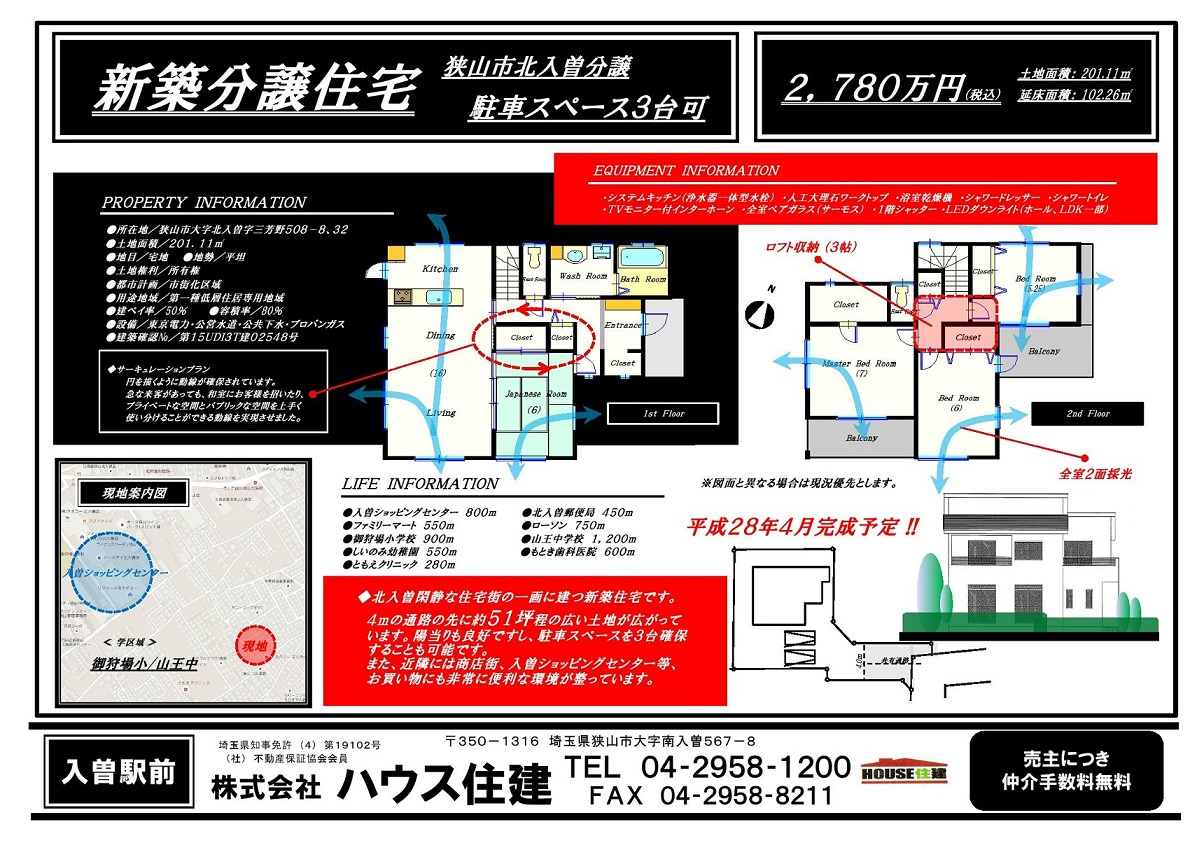 狭山市、入曽の不動産売買、新築分譲、リフォーム相談、賃貸アパート、駐車場はハウス住建