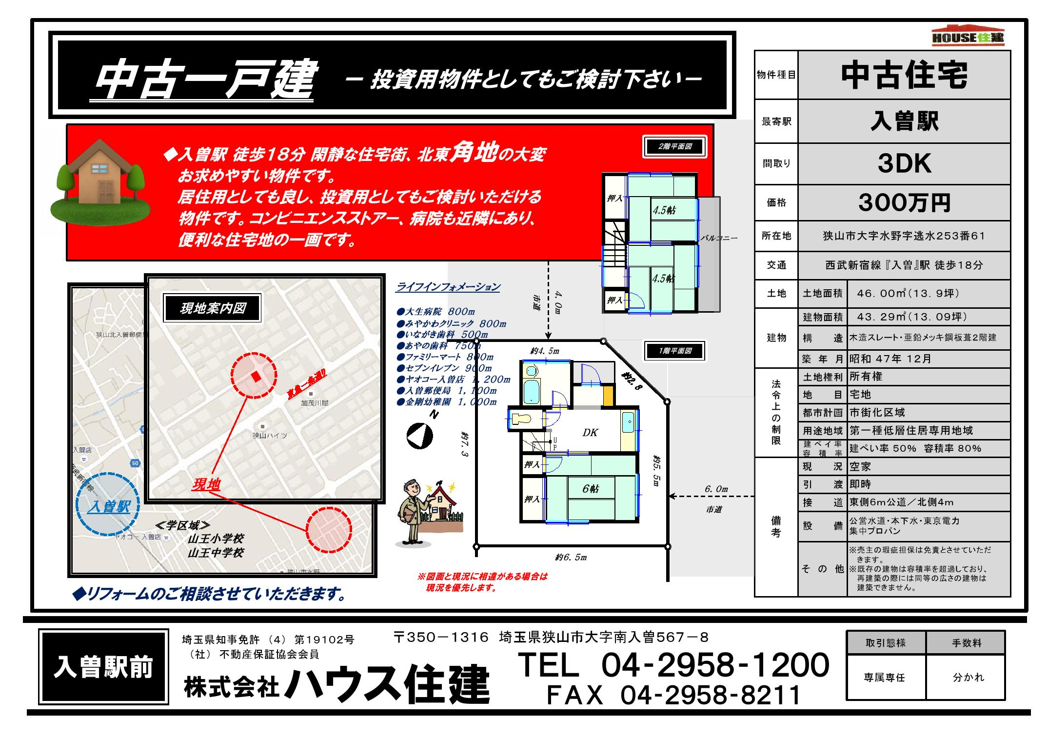 ハウス住建入曽駅すぐ近く!狭山市、入間市、所沢市周辺の不動産